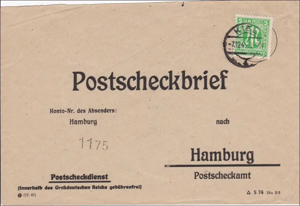 BiZone: Lettre de poste de Kiel 1945 à Hambourg