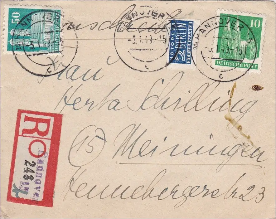 BiZone: Lettre recommandé de Hanovre après Meiningen 1949