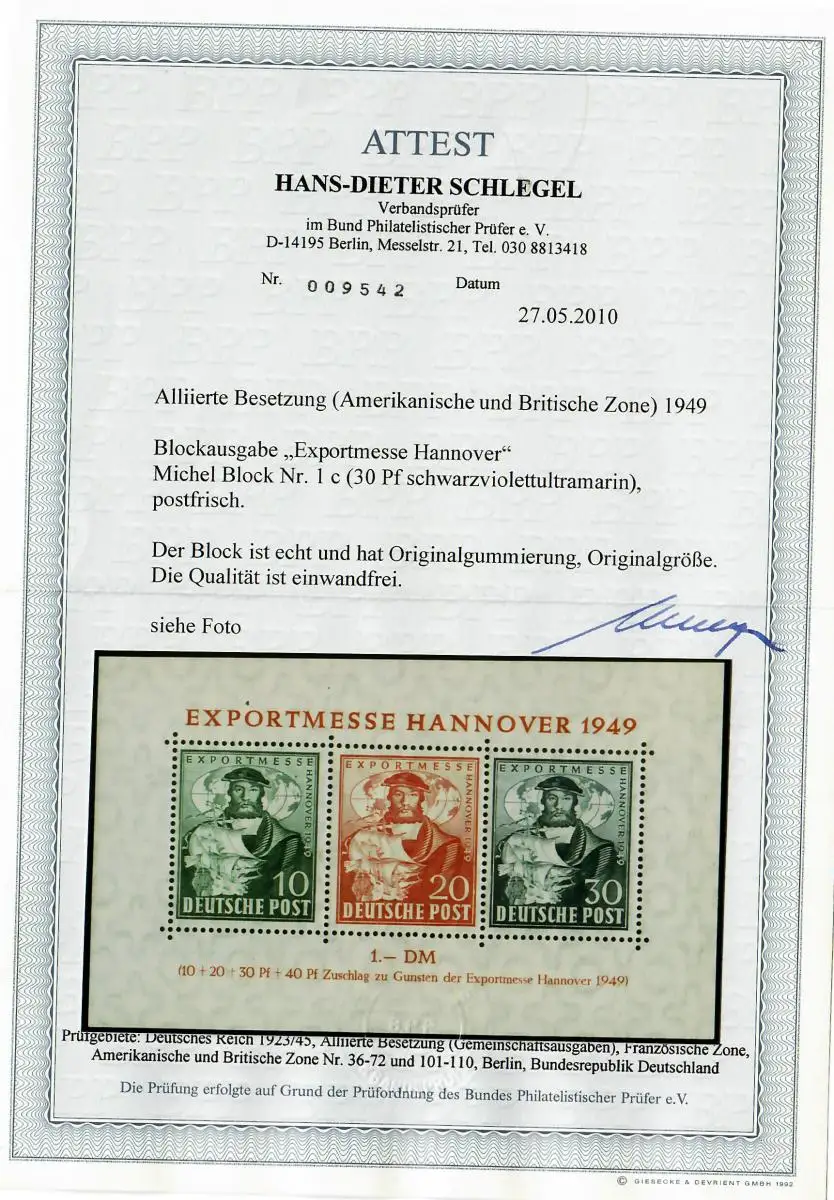 BiZone: MiNr. Block 1c, post-freease, **, BPP Attest