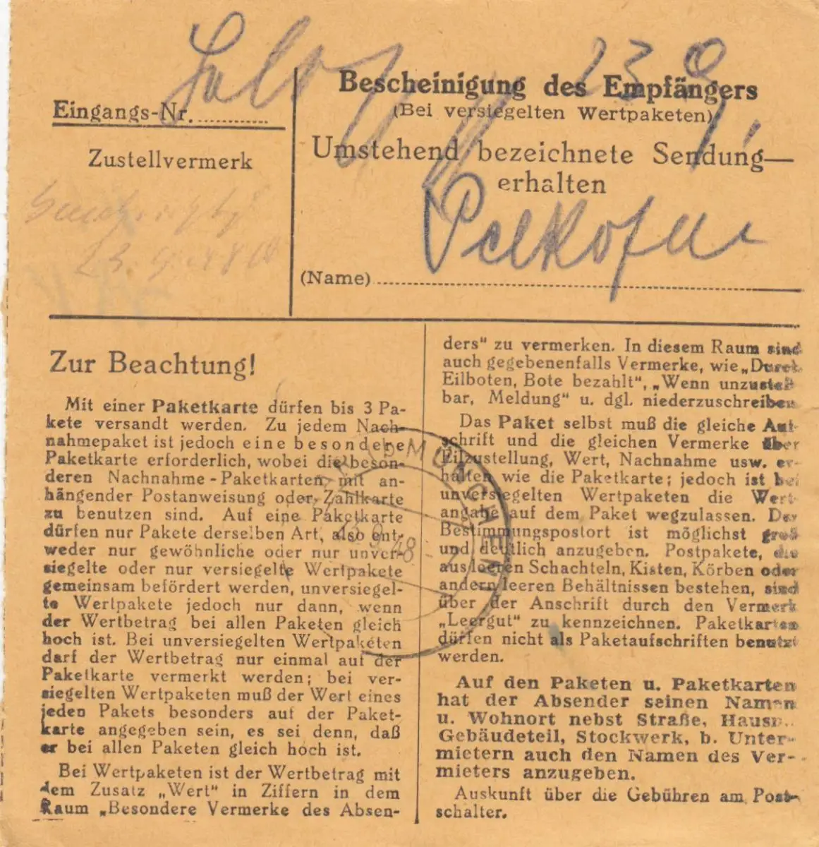 Carte de paquet BiZone 1948: Aigen sur Pocking après cheveux