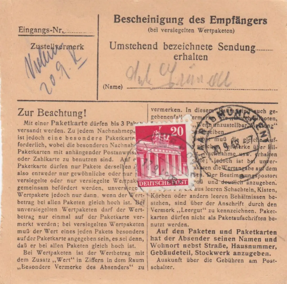 Carte de paquet BiZone 1948: Altenhofen après établissement de soins Haar