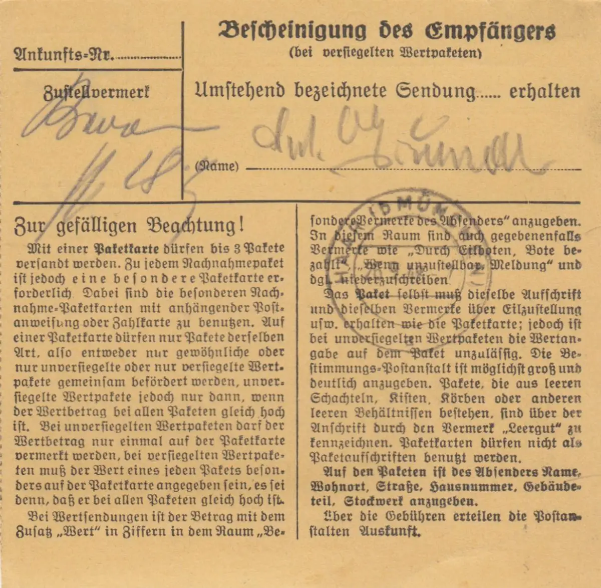 Carte de paquet BiZone 1948: Bad Kissingen vers Munich-Haar