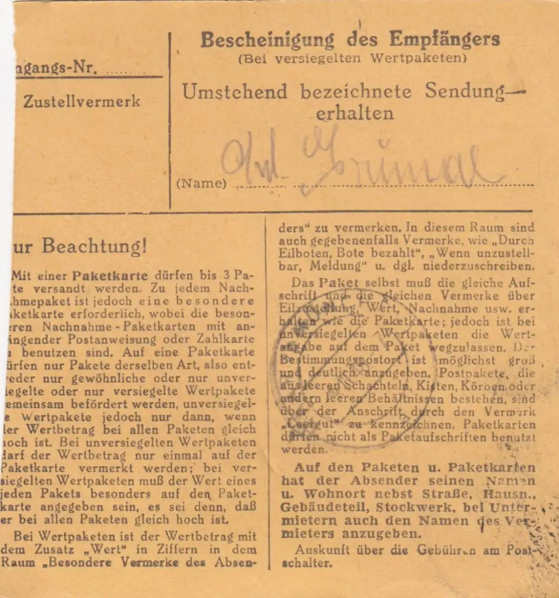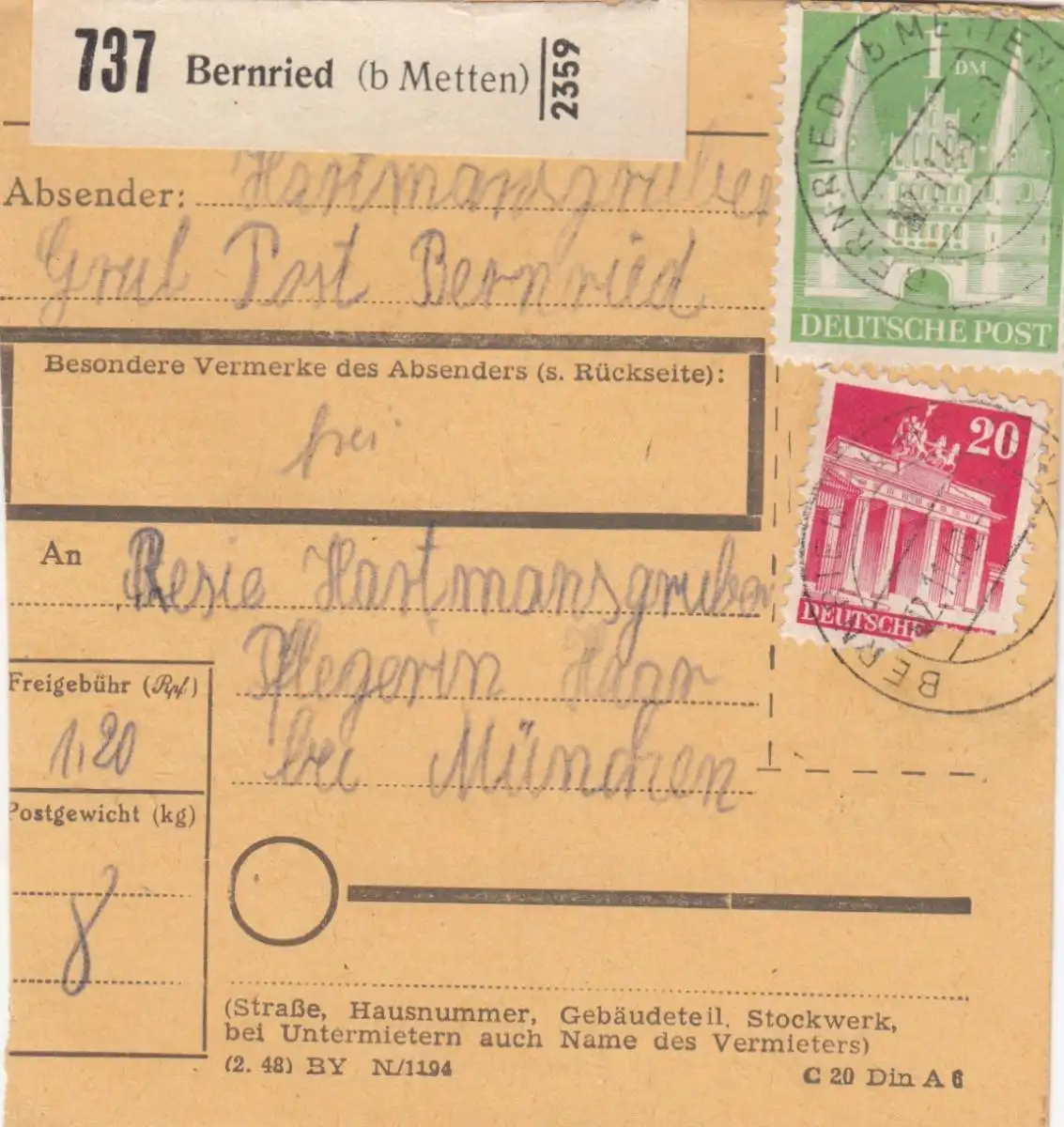 Carte de paquet BiZone 1948: Bernied après Haar b. Munich, infirmière