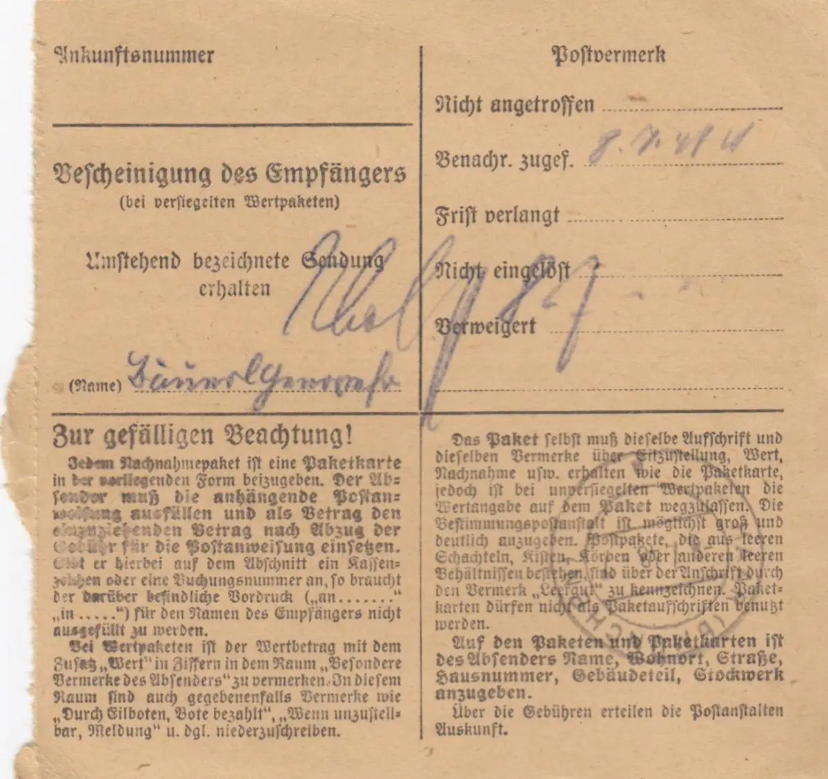 Carte de paquet BiZone 1948: Brannienburg après Haar b. Munich, rachat