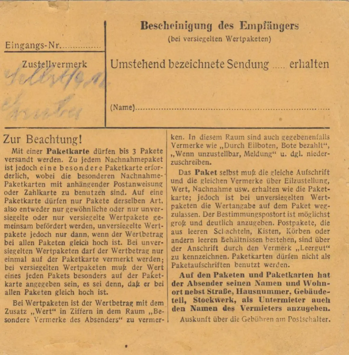 Carte de paquet BiZone 1948: Brühl, Sécurisés, Frais supplémentaires