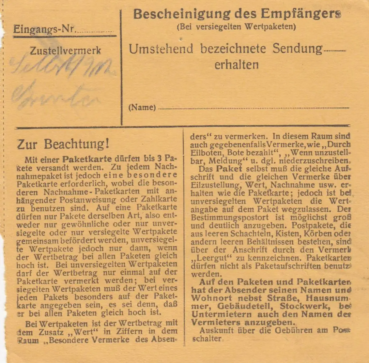 Carte de paquet BiZone 1948: Burghausen à Berchtesgaden, supplément, victime d'urgence