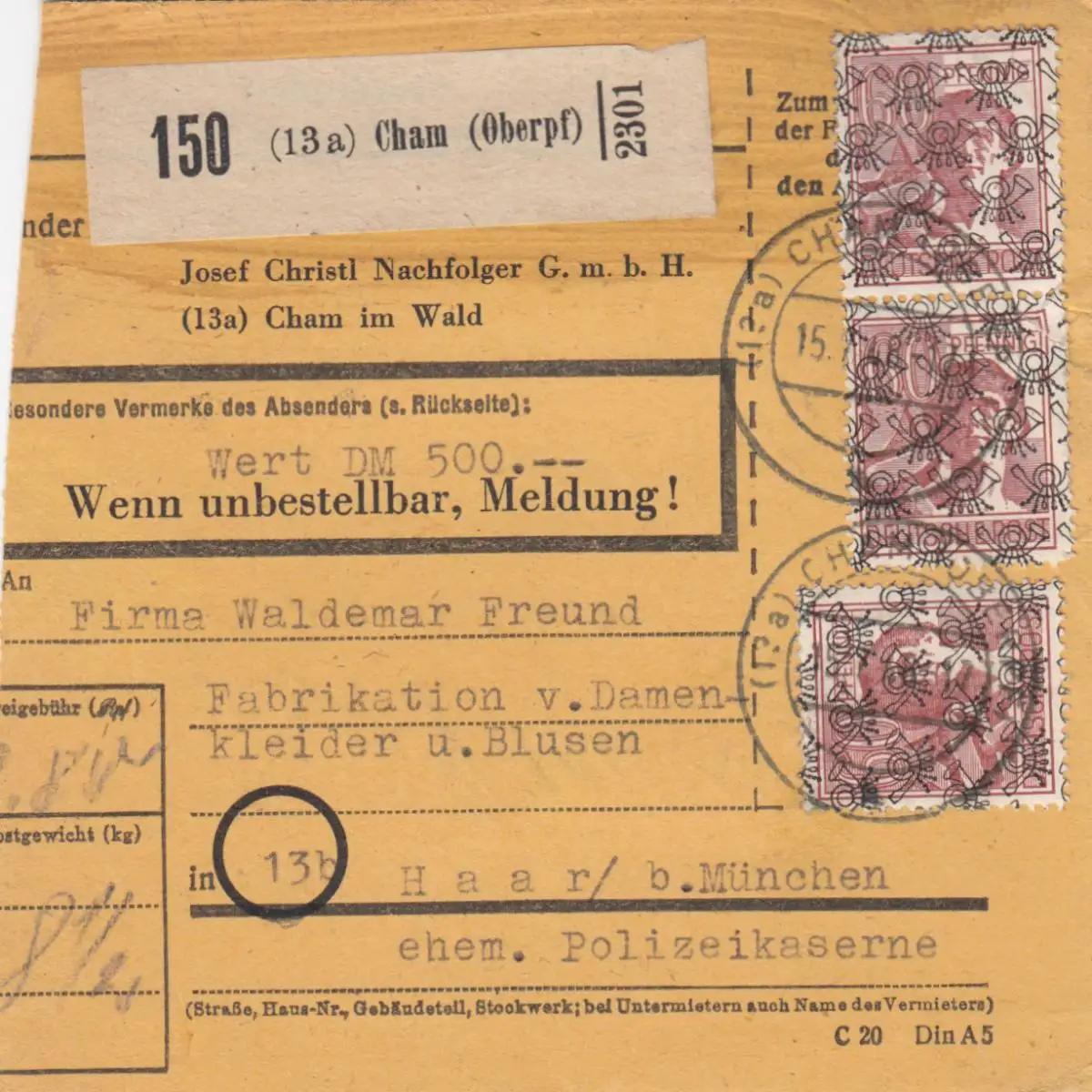 Carte de paquet BiZone 1948: Cham par cheveux, livreur automatique, carte de valeur