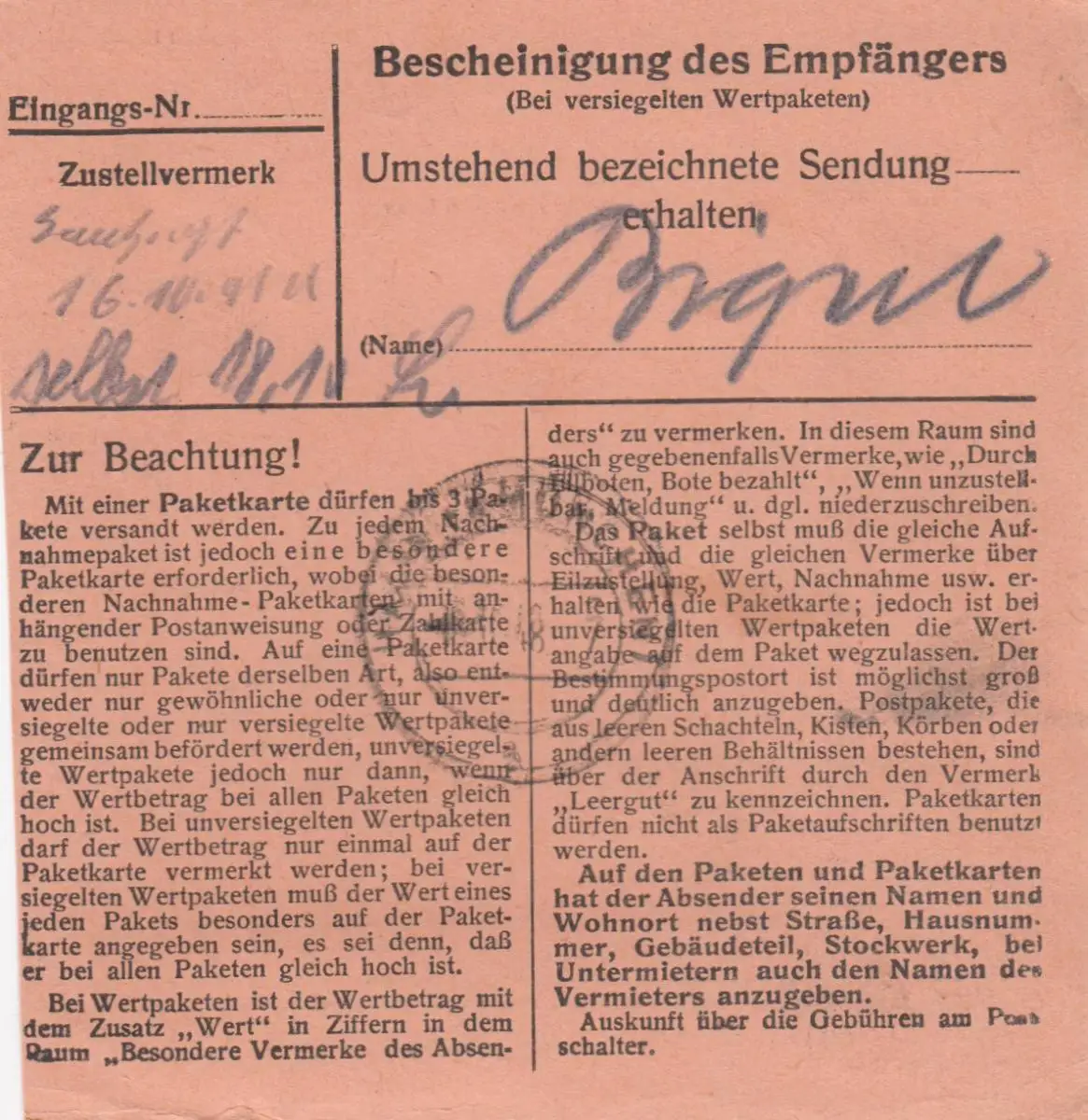 Carte de paquet BiZone 1948: Dietersburg à Haar près de Munich