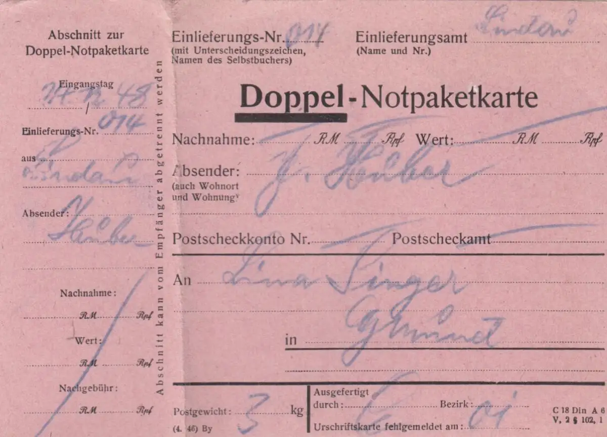Carte de paquet BiZone 1948: Carte d'urgence double pour Gmund