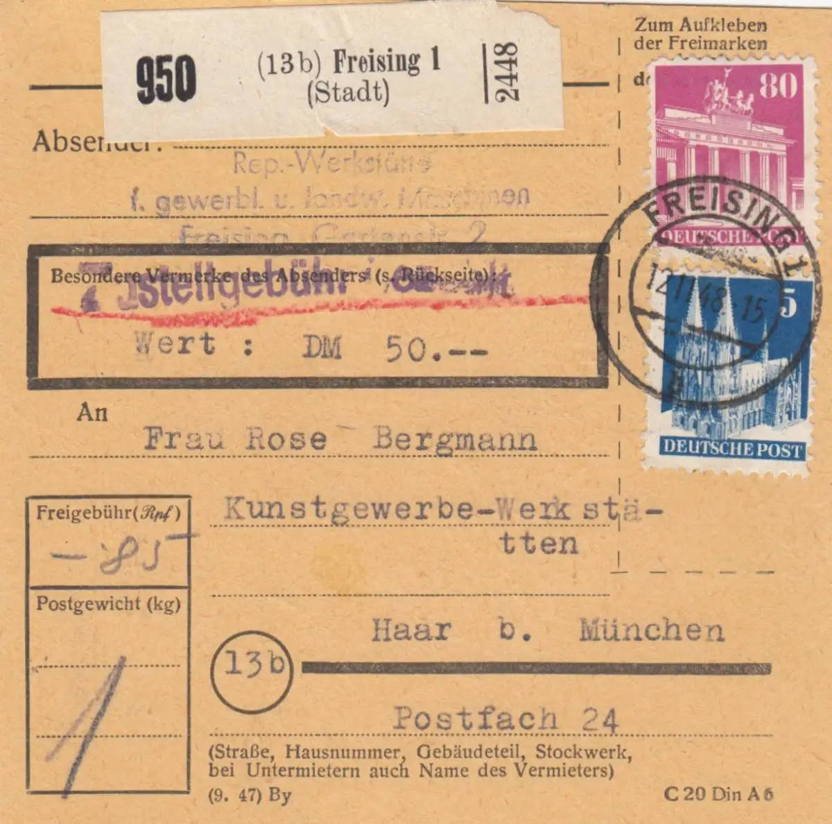 Carte de paquet BiZone 1948: freising après cheveux, art, carte de valeur