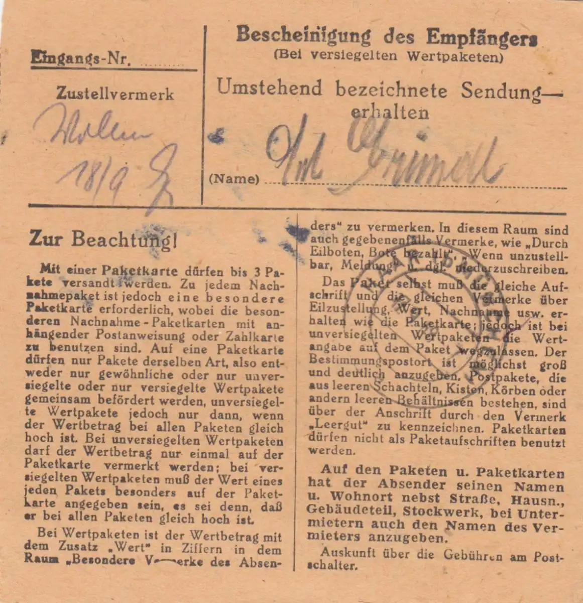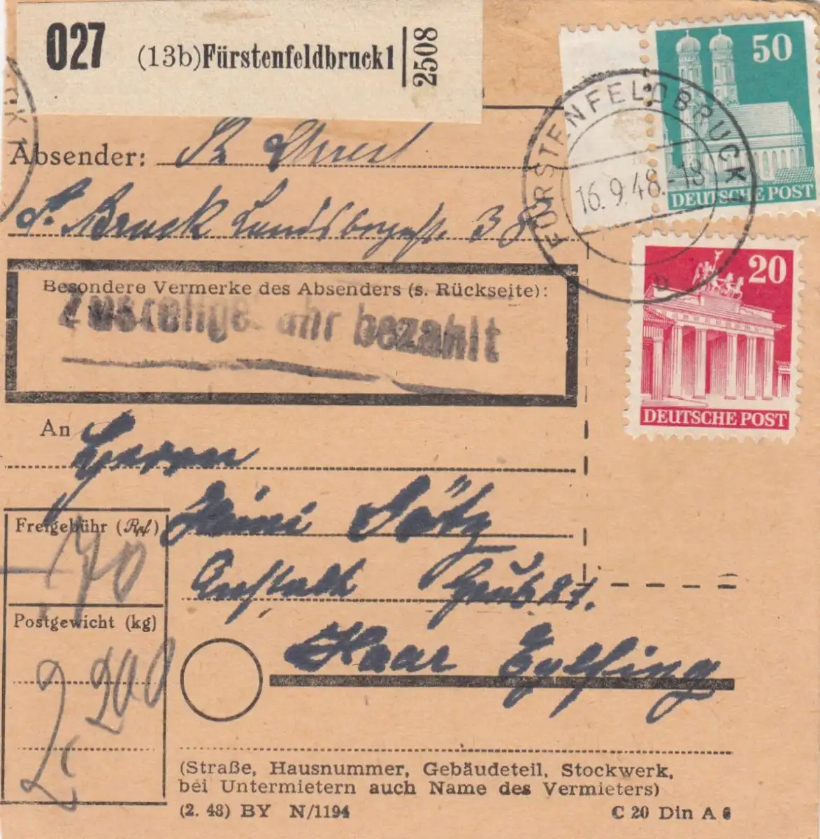 Carte de paquet BiZone 1948: Fürstenfeldbruck après Haar Eglfing