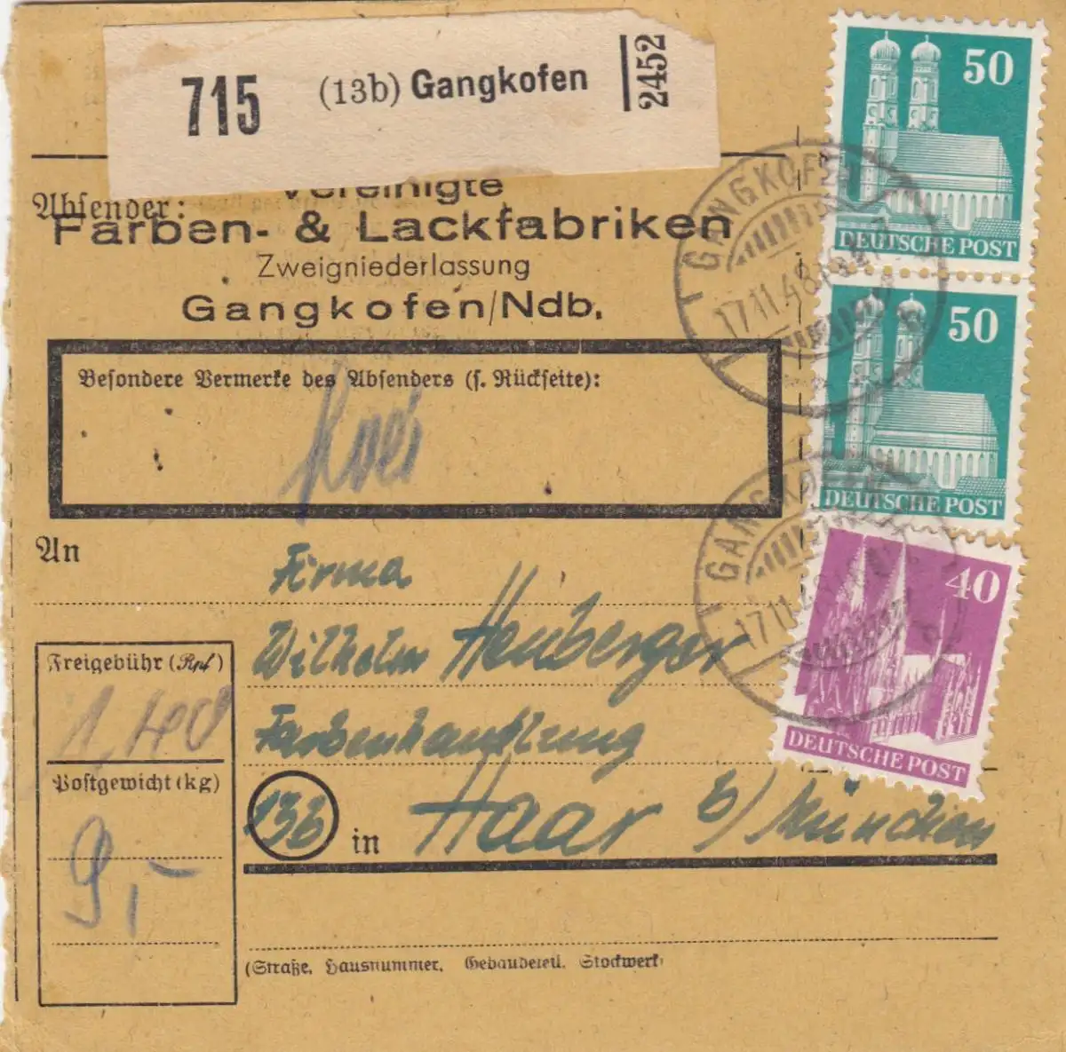 Carte de paquet BiZone 1948: four à four de gang après les cheveux près de Munich