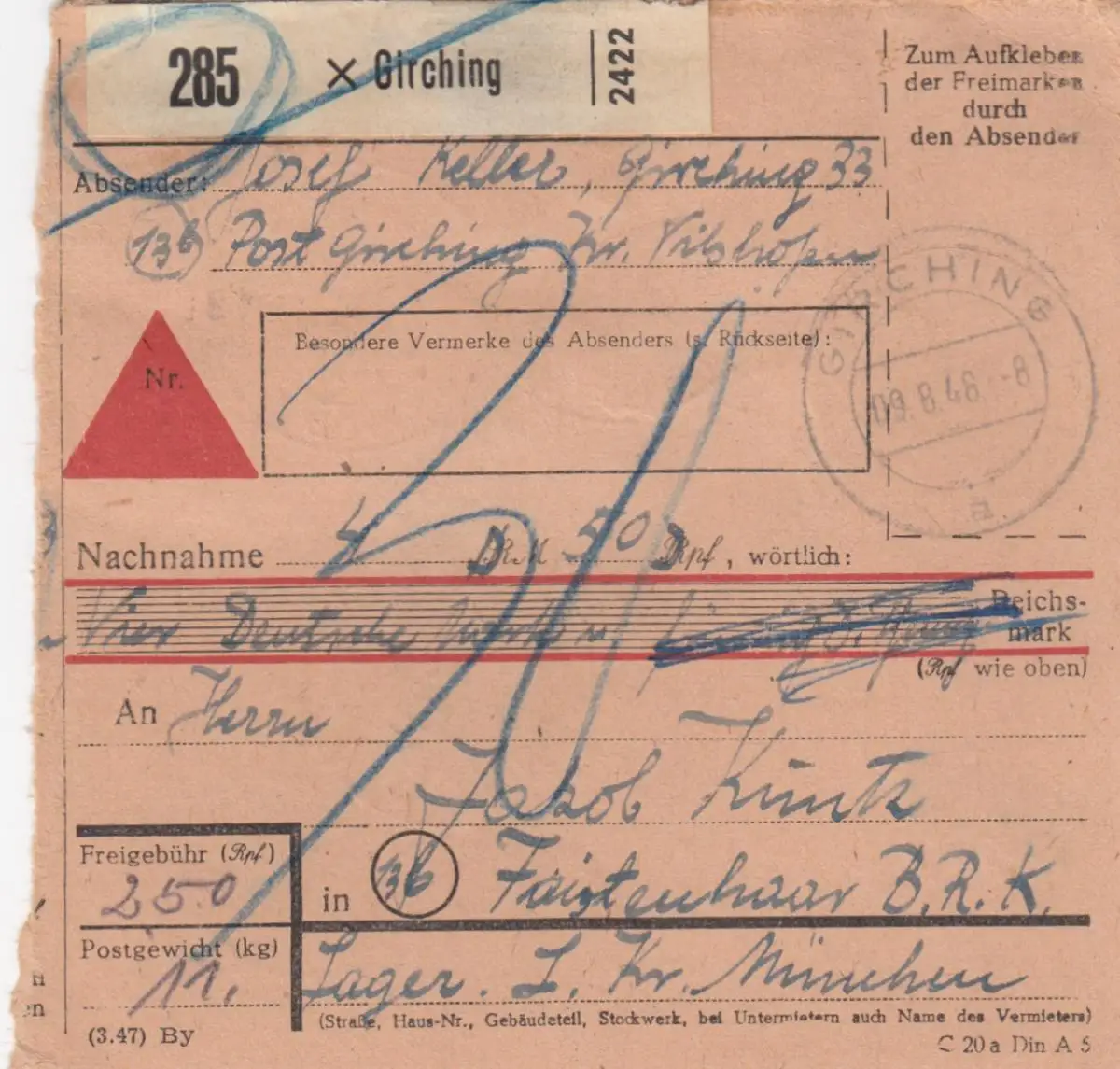 Carte de paquet BiZone 1948: Girching après les cheveux de Faisten, réduction
