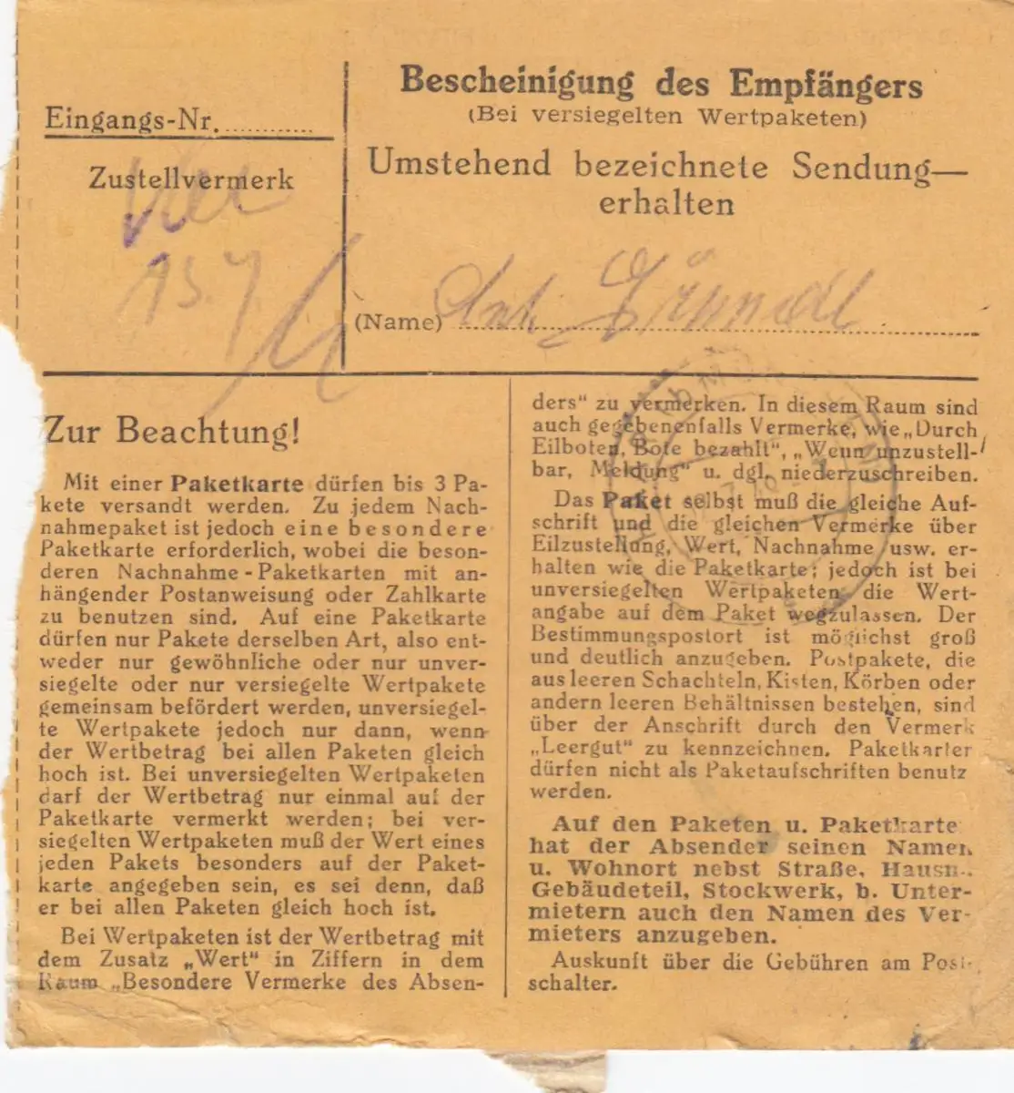 Carte de paquet BiZone 1948: Cour Saale par cheveux, infirmière