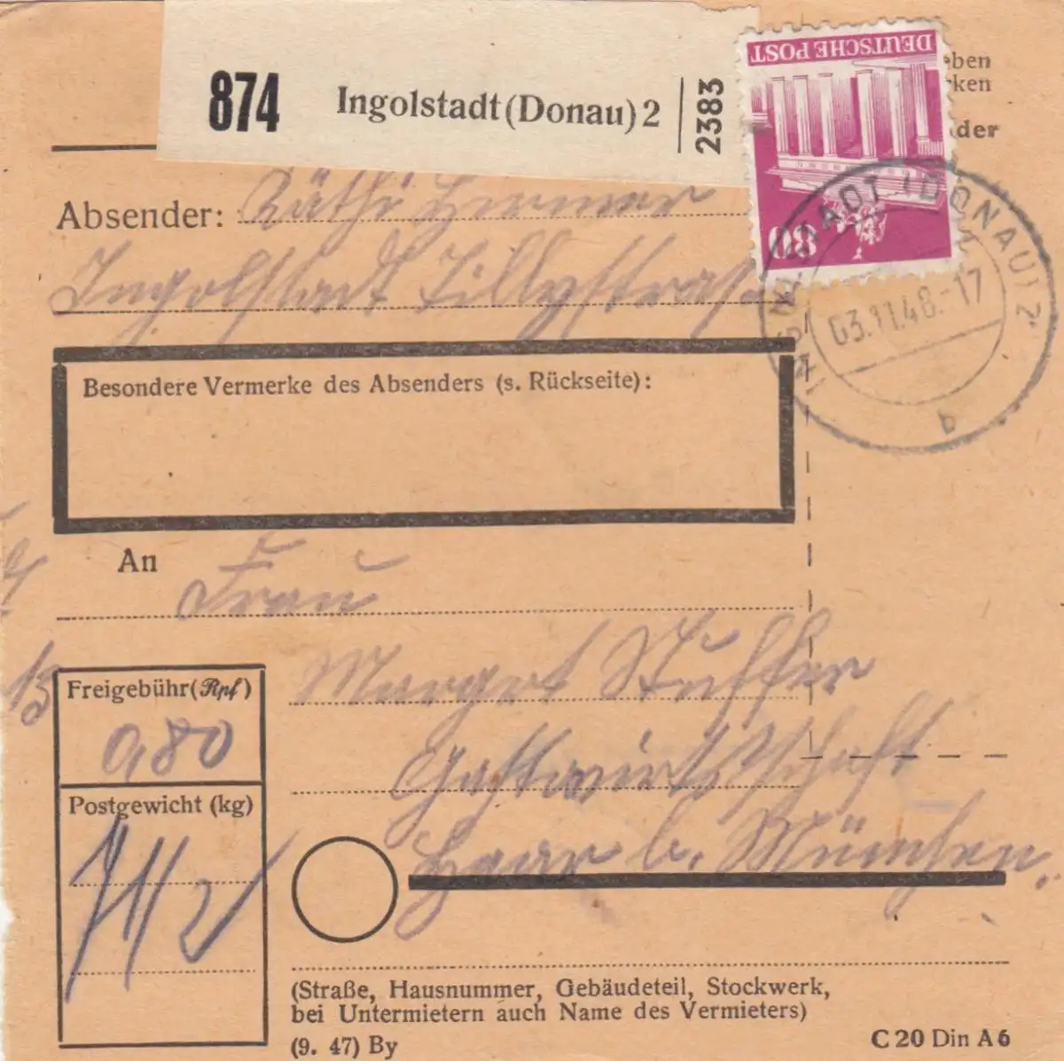 Carte de paquet BiZone 1948: Ingolstadt par Haar