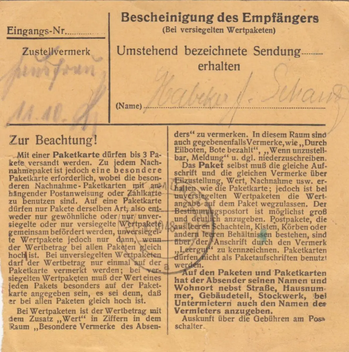 Carte de paquet BiZone 1948: Ingolstadt par cheveux, frais supplémentaires