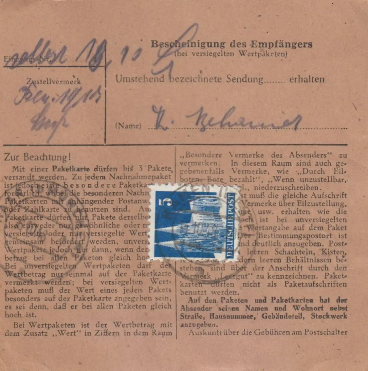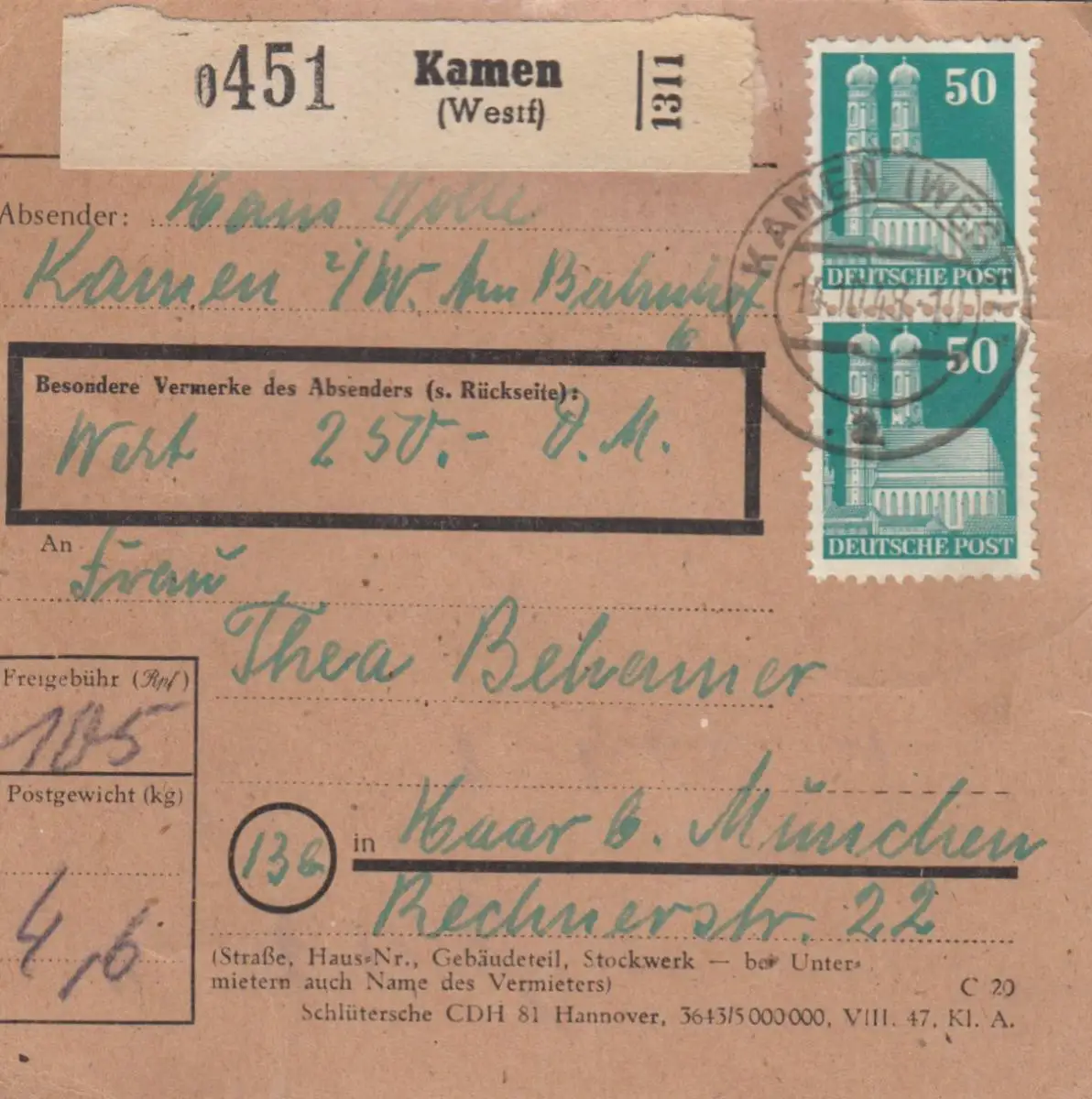 Carte de paquet BiZone 1948: Kamen Westf. après Haar près de Munich