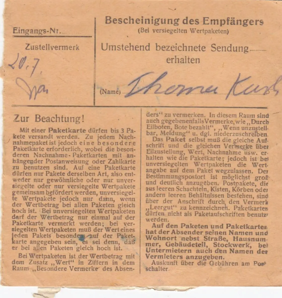Carte de paquet BiZone 1948: Mainburg vers Oberammergau Lindenhof