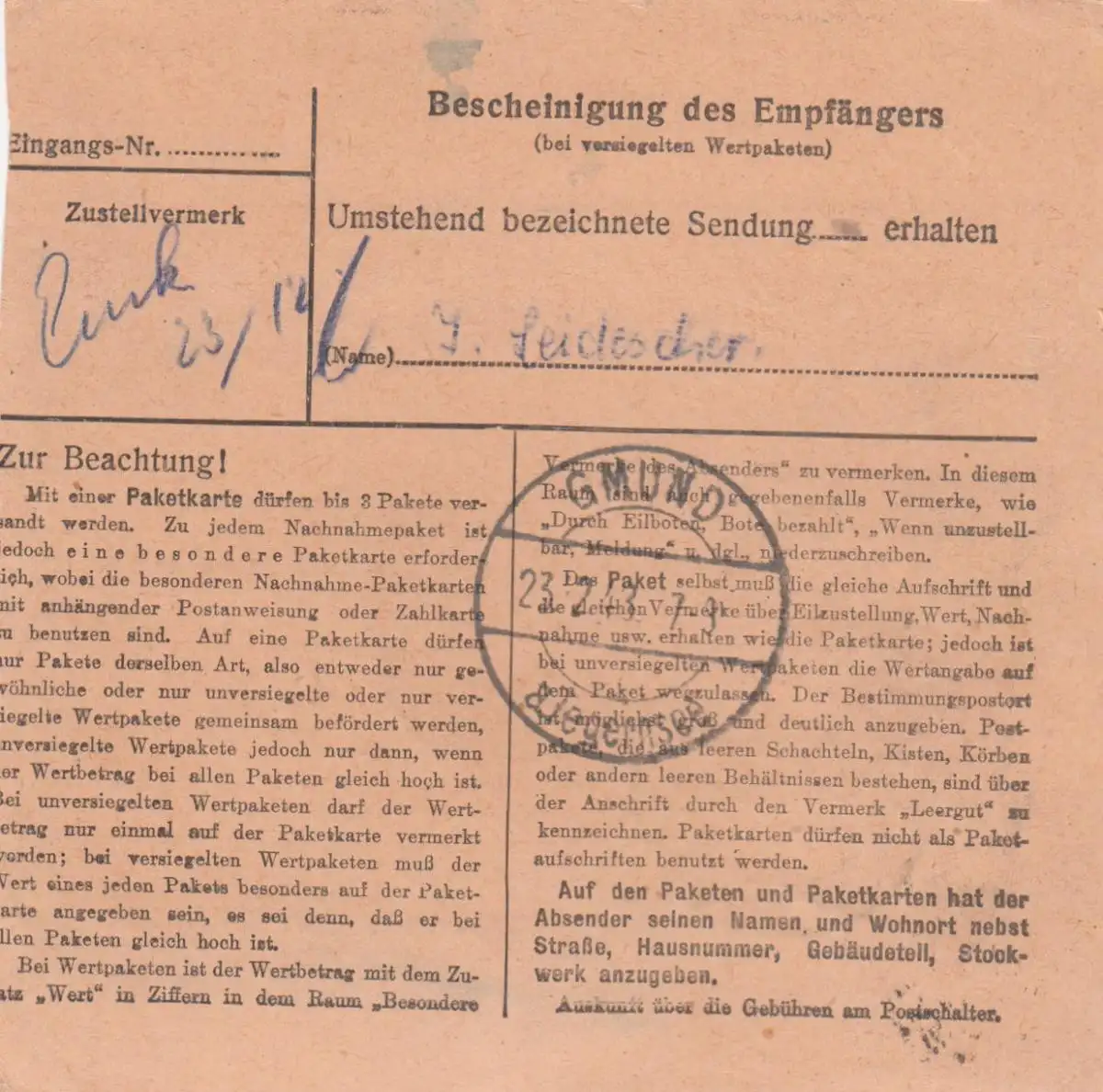 Carte de paquet BiZone 1948: Memmingen d'après Gmund a. Tegernsee