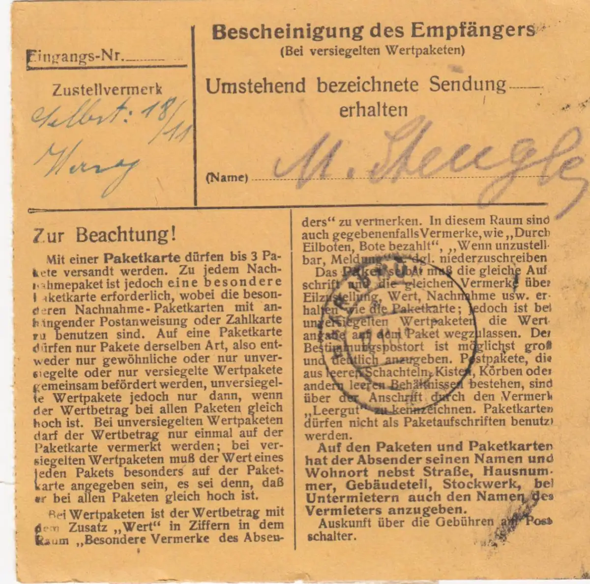 Carte de paquet BiZone 1948: Mittenwald (Karwendelgeb.) par cheveux, supplément