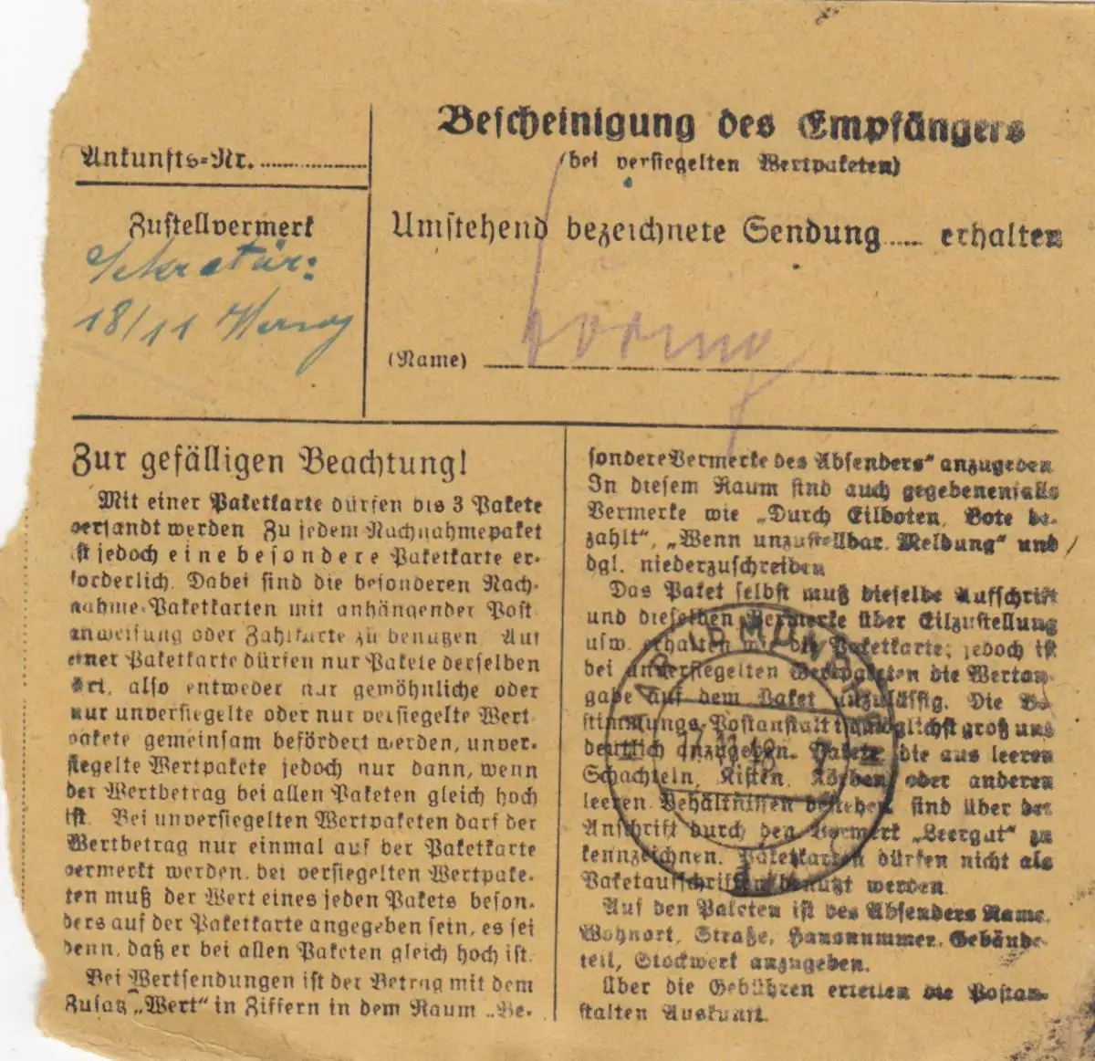 Carte de paquet BiZone 1948: Munich vers Grasbrunn, Auto-bookeur, frais supplémentaires