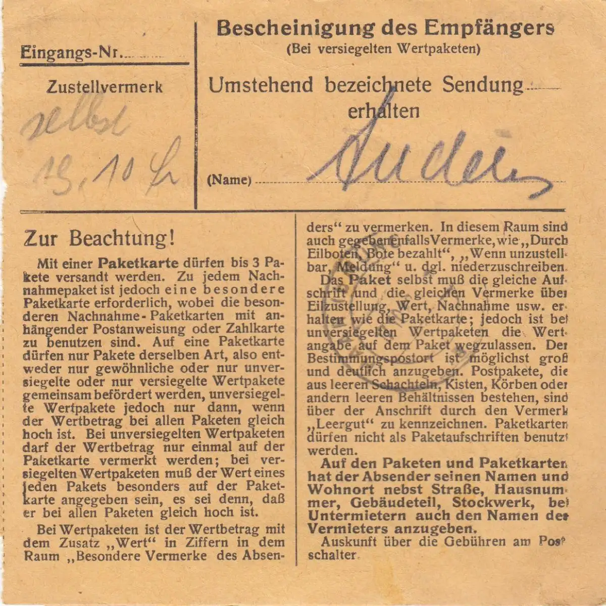 Carte de paquet BiZone 1948: Munich après Haar b. Munich