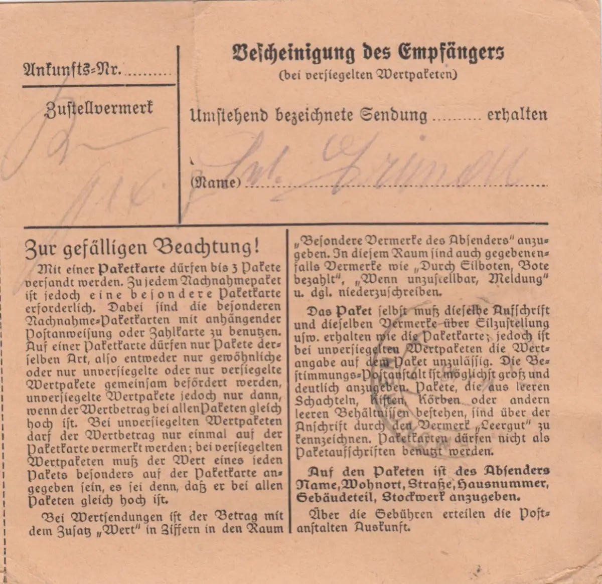 Carte de paquet BiZone 1948: Neuburg Donau après Haar, Heilanstalt