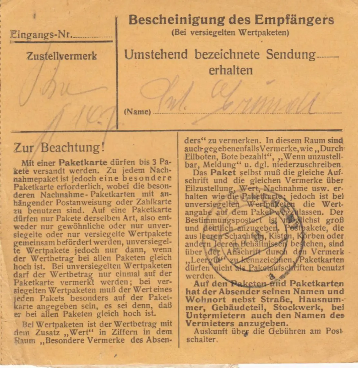 Carte de paquet BiZone 1948: Oberammergau après Eglfing