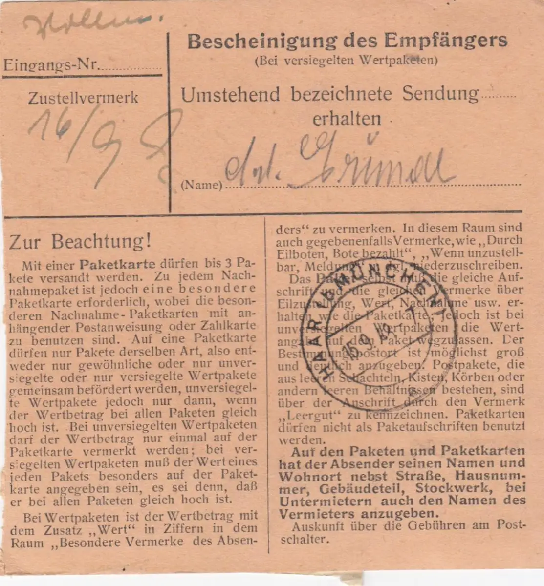 Carte de paquet BiZone 1948: Pasing Obermerzing après les cheveux, établissement de soins