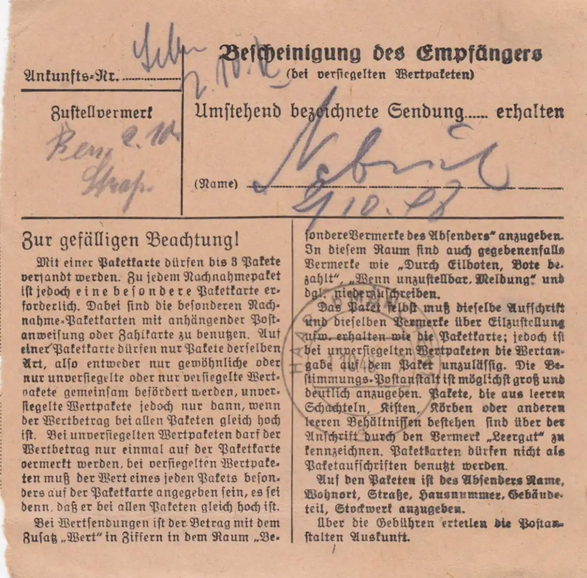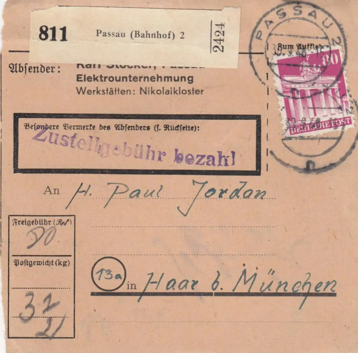 Carte de paquet BiZone 1948: Passau (gare) 2 par Haar b. Munich