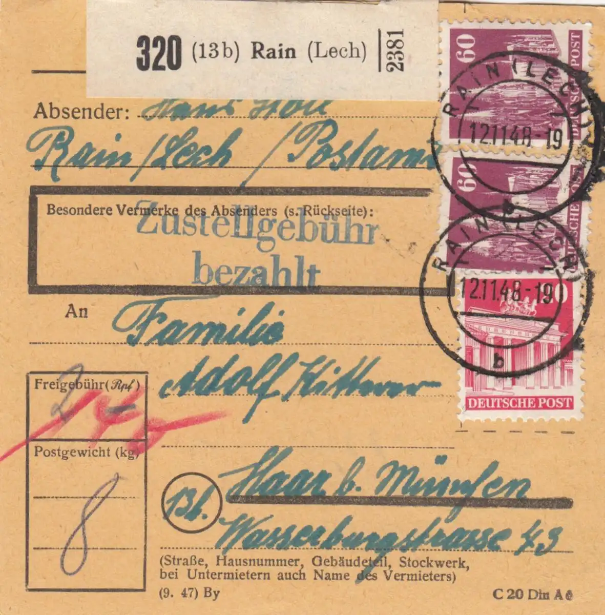 Carte de paquet BiZone 1948: Rain vers Haar près de Munich
