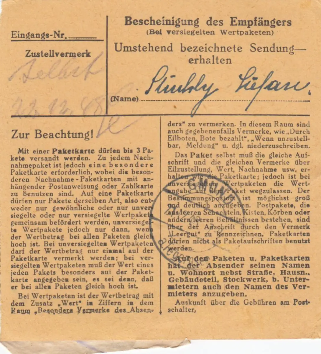 Carte de paquet BiZone 1948: Regensburg Domplatz vers Gmund Tegernsee, Victimes d'urgence