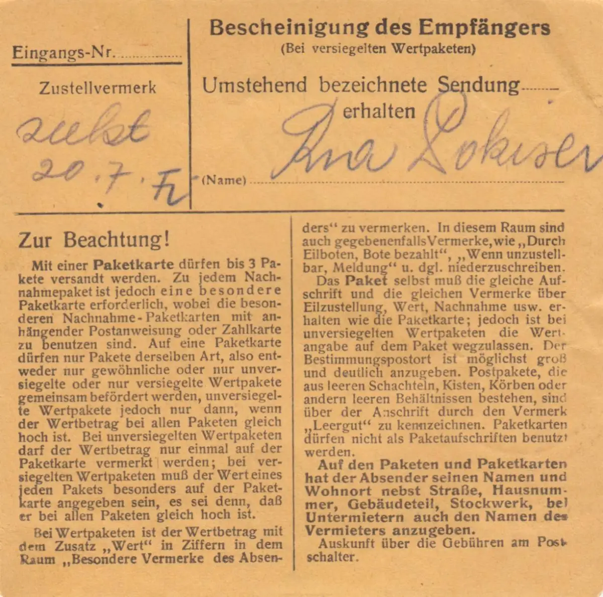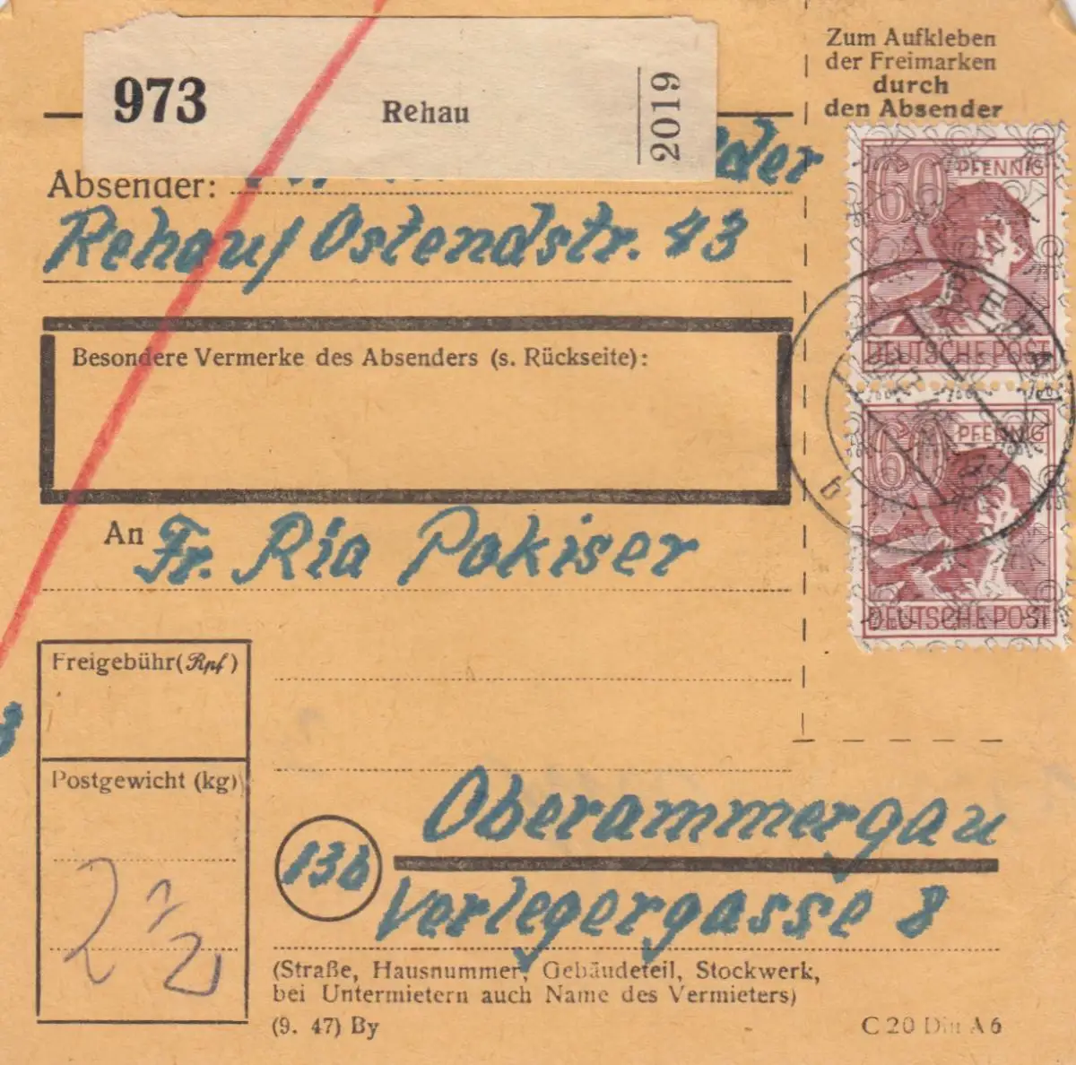 Carte de paquet BiZone 1948: Rehau vers Oberammergau