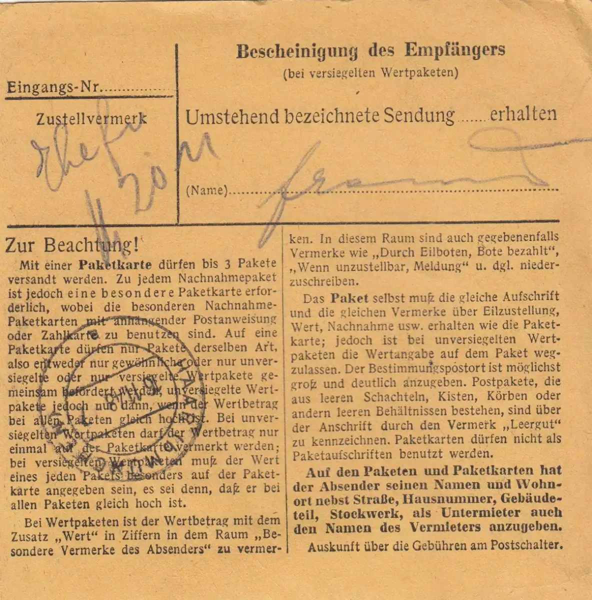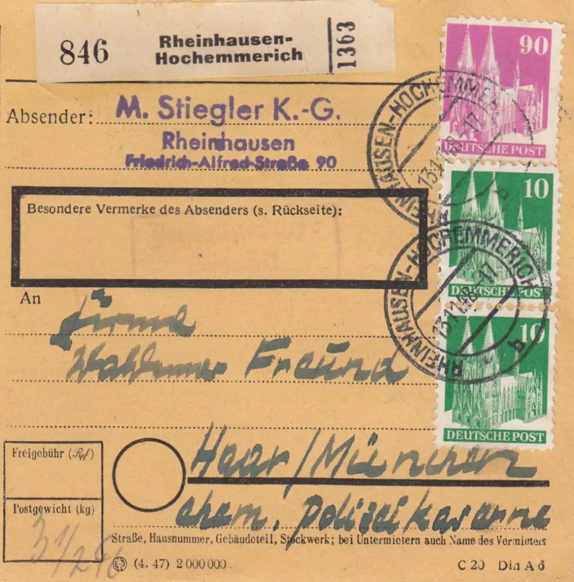 Carte de paquet BiZone 1948: Rheinhausen-Hochemmerich selon la pièce de cheveux