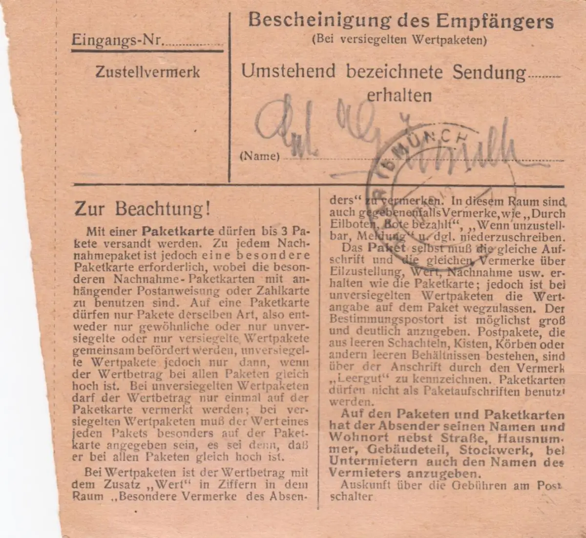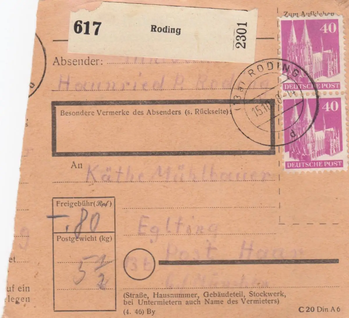 Carte de paquet BiZone 1948: Roding Haunried après Eglfing