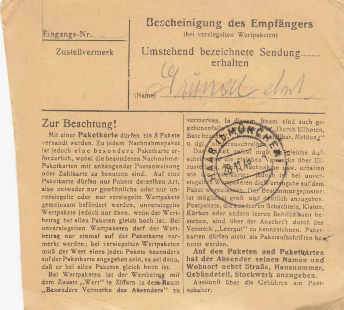 Carte de paquet BiZone 1948: Rosenheim après Eglfing, Post Haar, asile