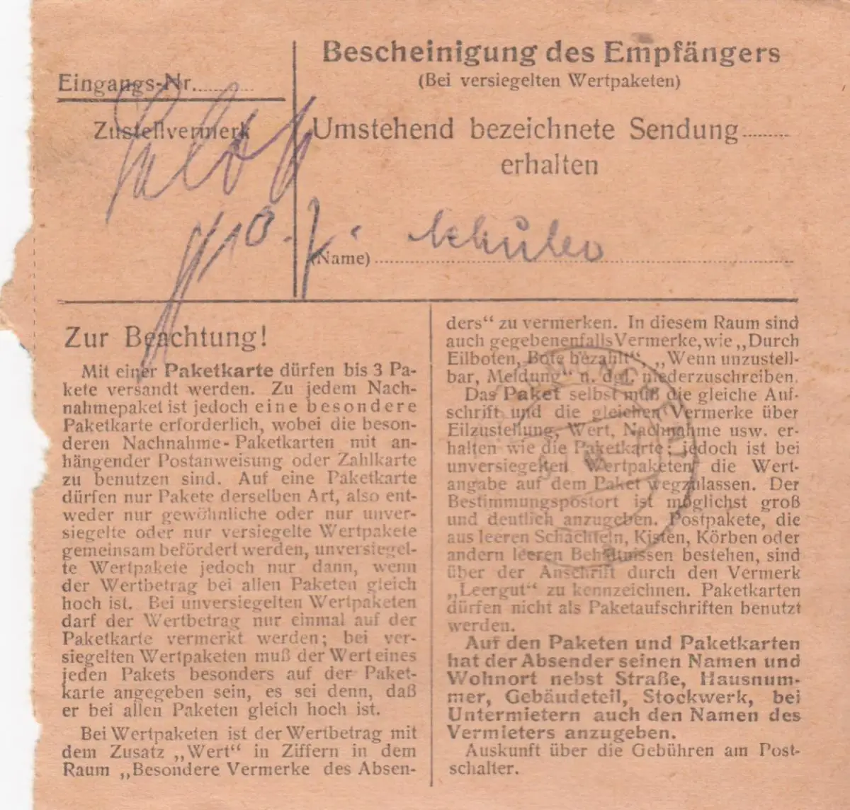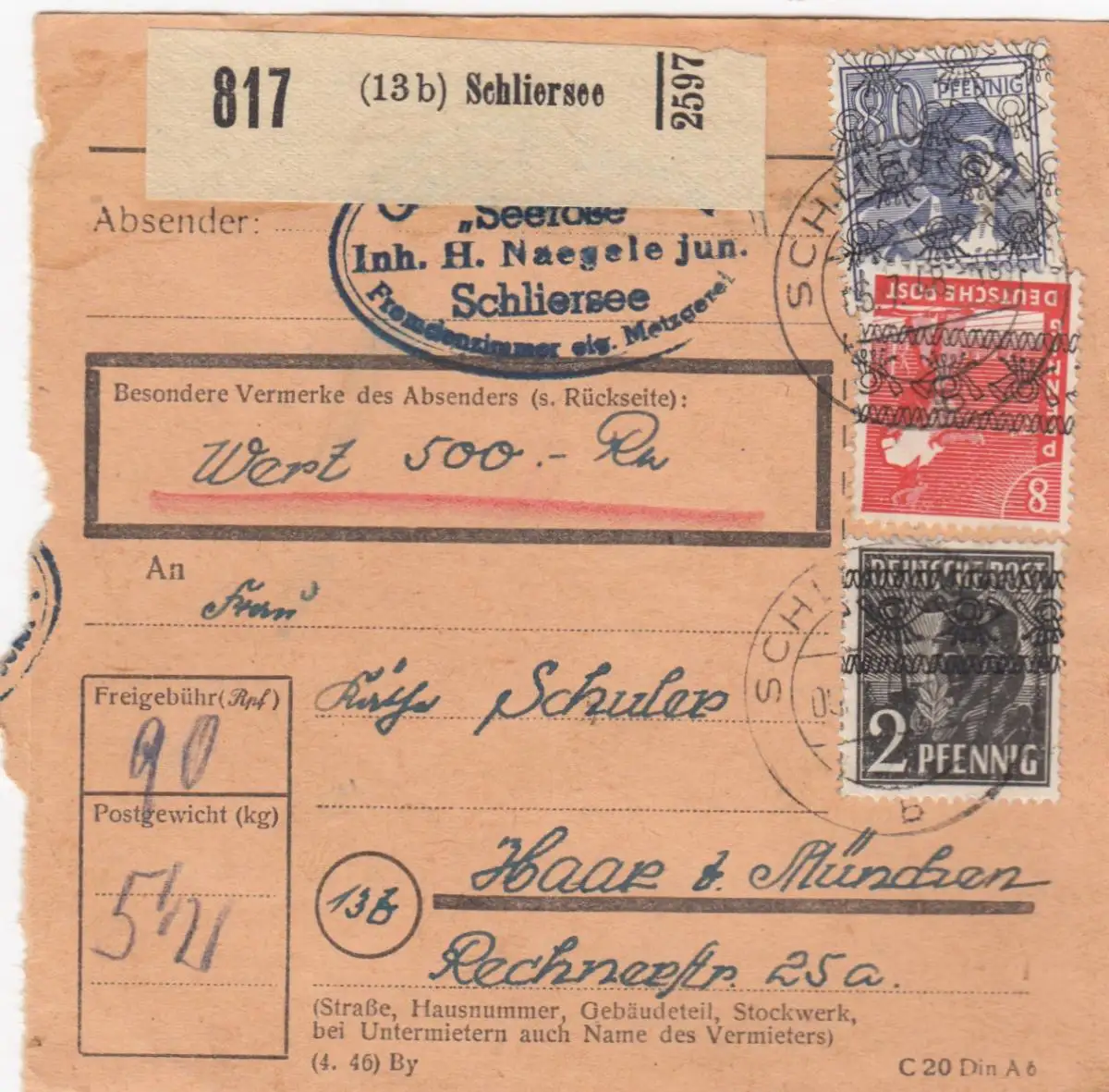 Carte de paquet BiZone 1948: Schliersee par cheveux, carte 500 RM