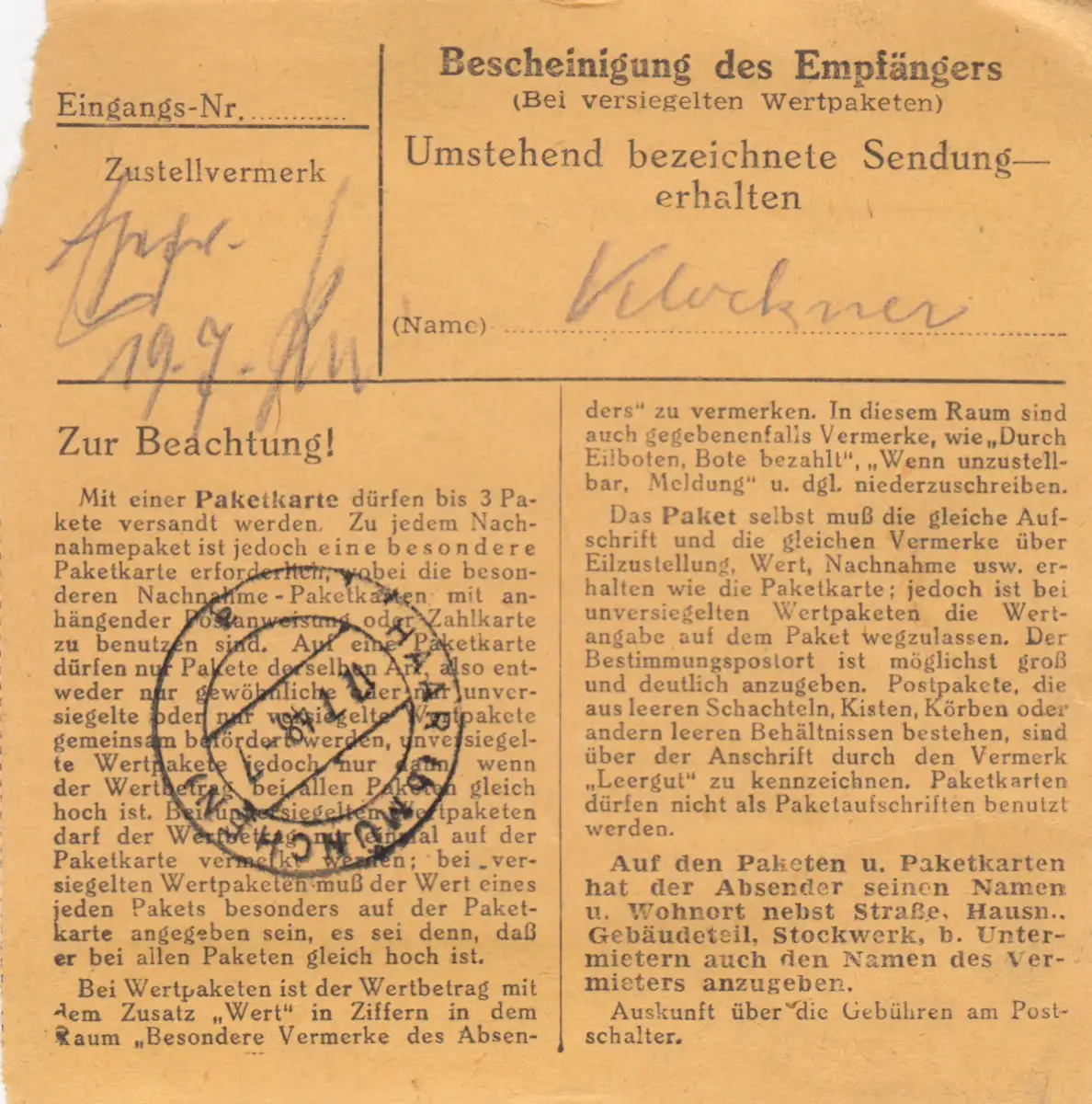 Carte de paquet BiZone 1948: Siglbrunn Falkenfels selon les cheveux