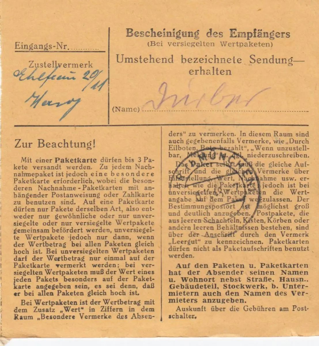 Carte de paquet BiZone 1948: Sontheim Memmingen par cheveux, supplément