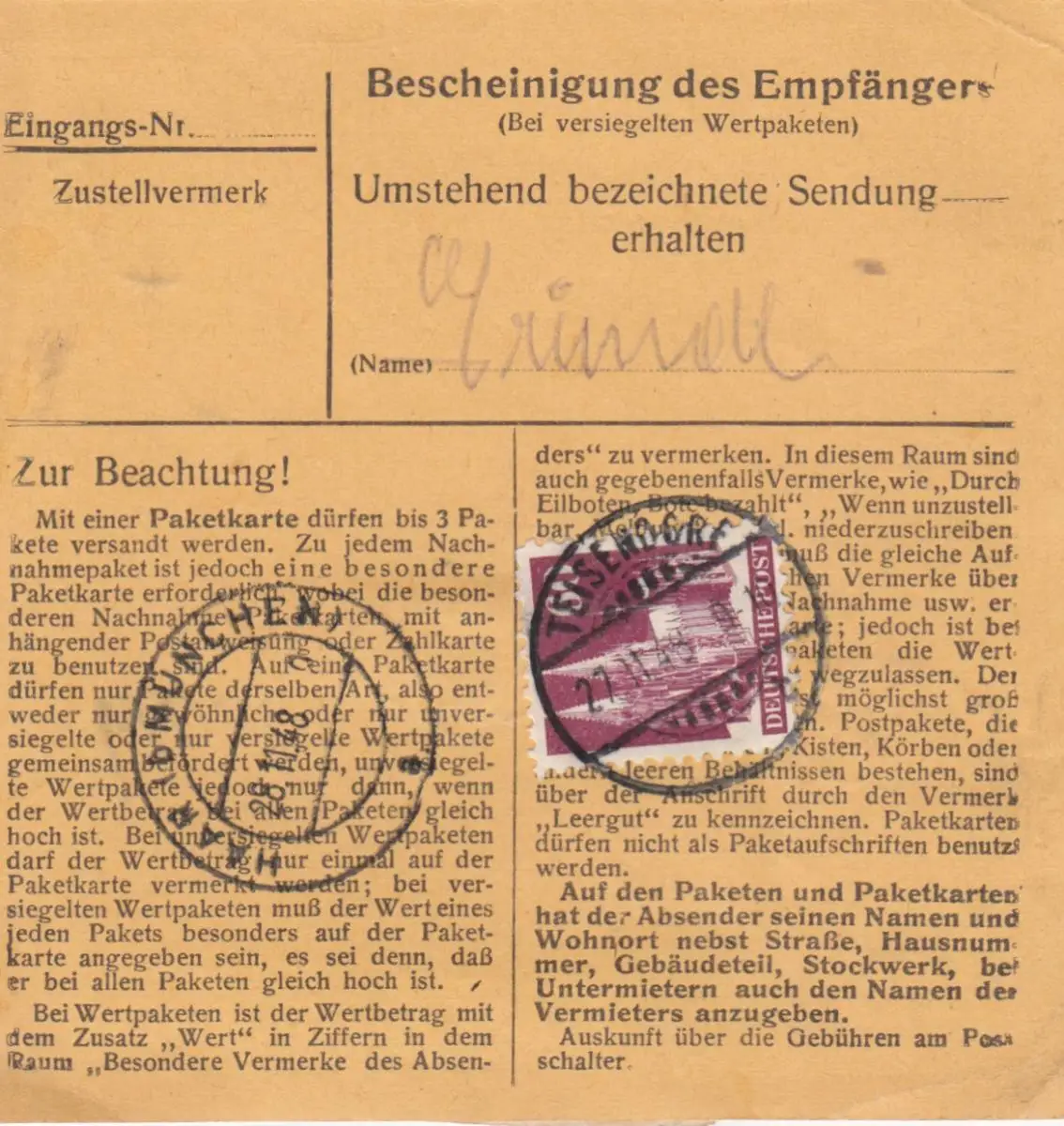 Carte de paquet BiZone 1948: Teisendorf vers Eglfing, Eilbote, Carte