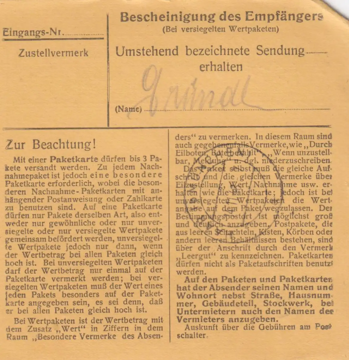 Carte de paquet BiZone 1948: Tettenweis après Eglfing, Blanchisserie