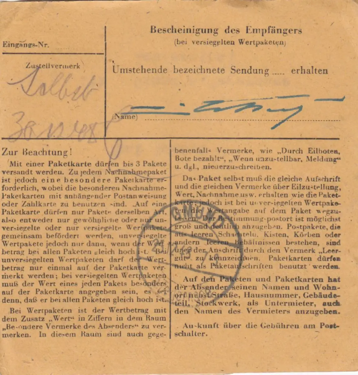 BiZone Carte de paquet 1948: Touristverein Les amis de la nature Nuremberg vers Gmund