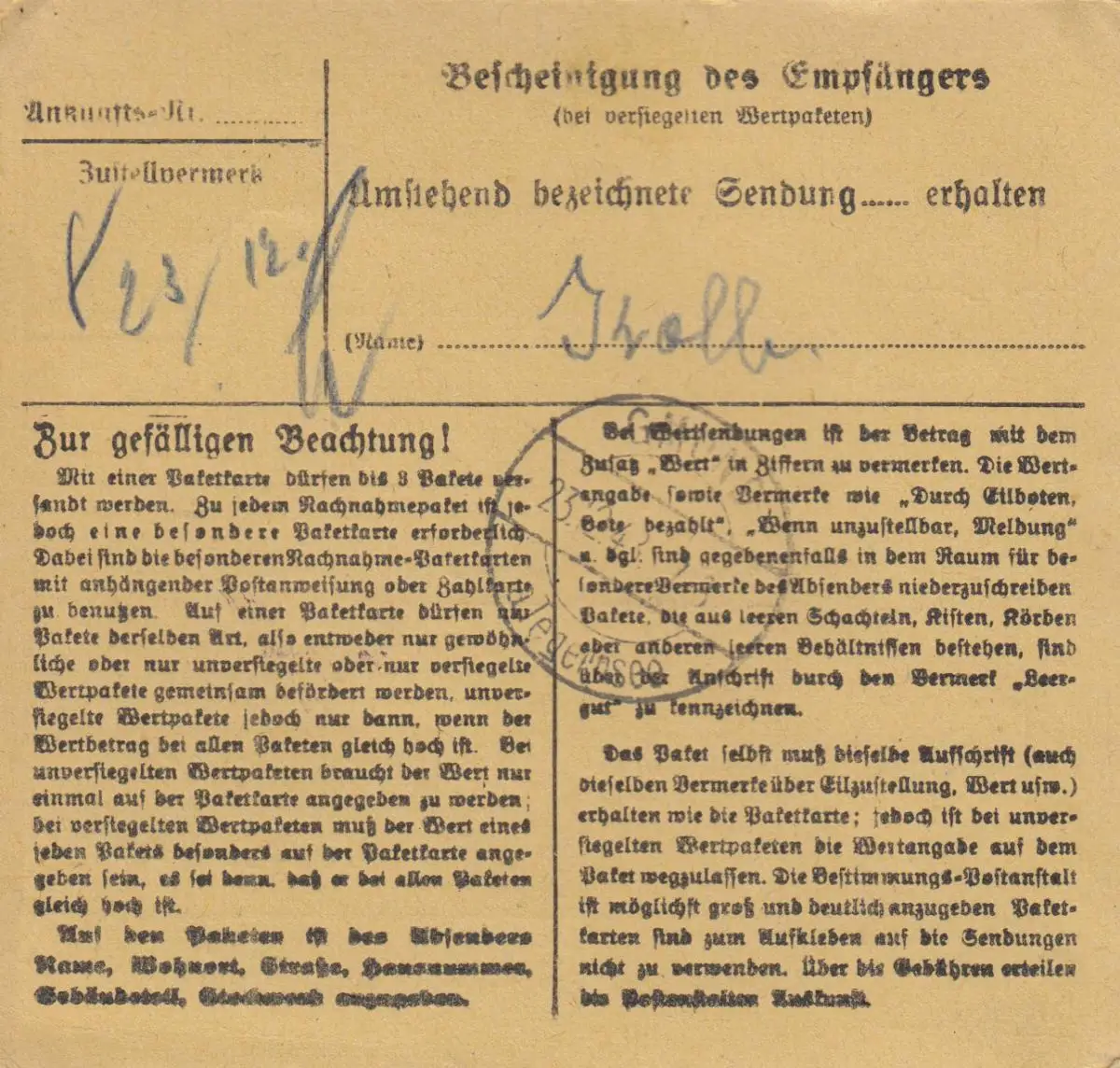 Carte de paquet BiZone 1948: Traunstein après Gmund, carte de valeur, victime d'urgence