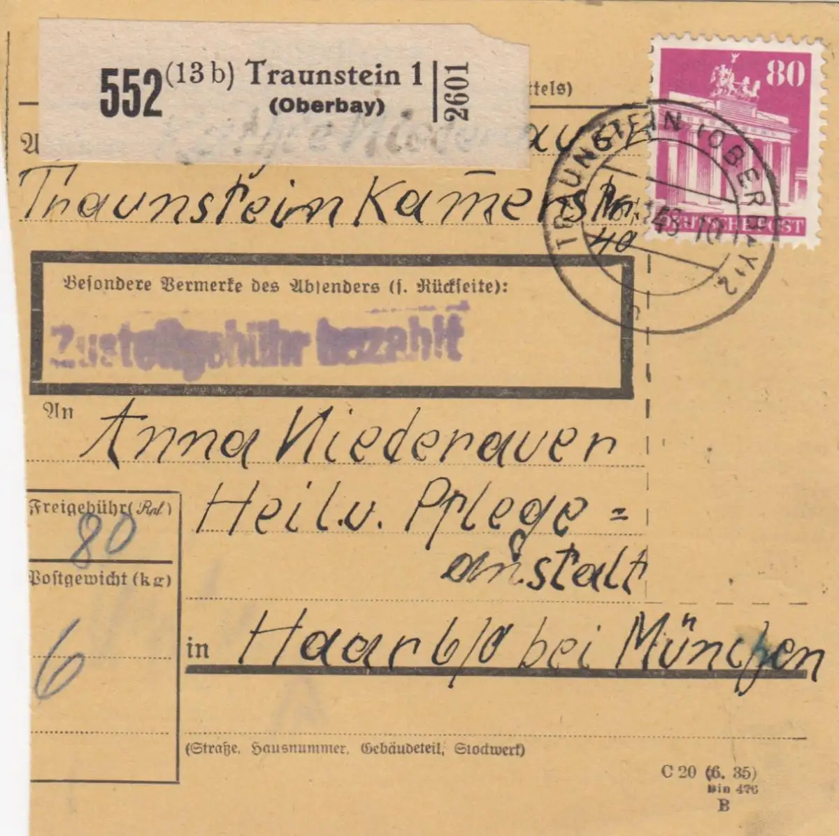 Carte de paquet BiZone 1948: Traunstein par cheveux, établissement de soins
