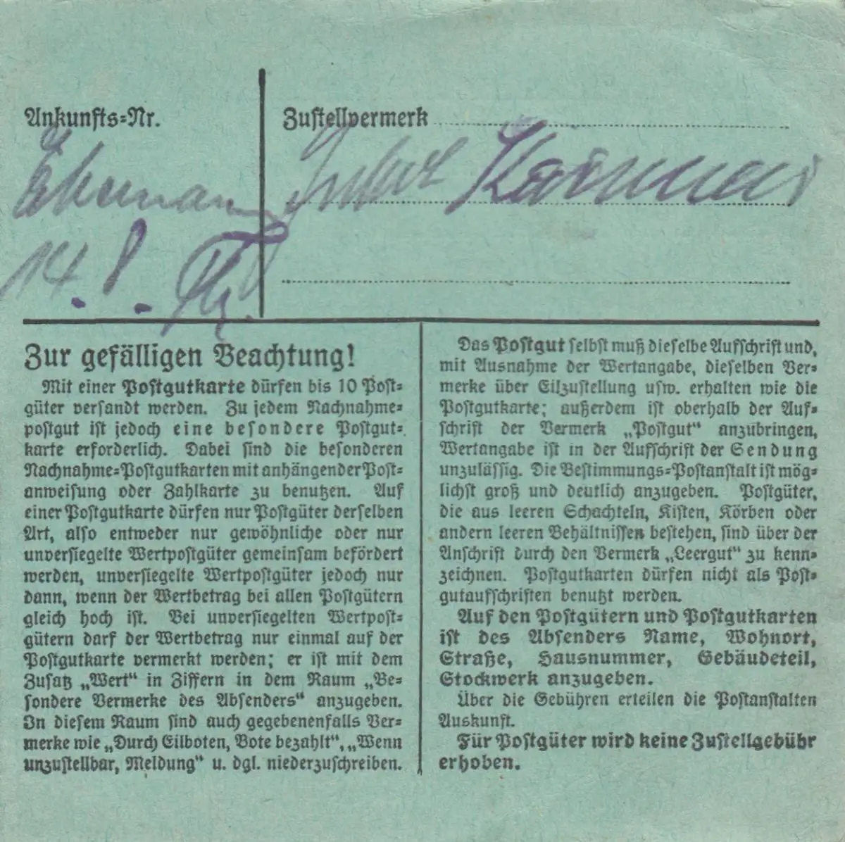 Carte de paquet BiZone 1948: Vilsbiburg vers Ottobrunn, formulaire spécial