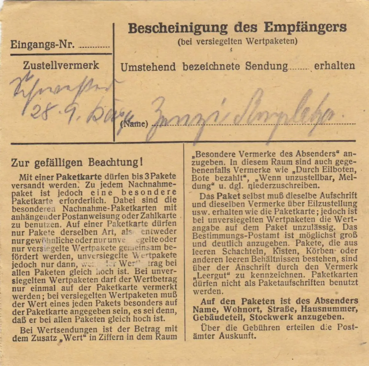 BiZone Carte de paquet 1948: Parce que la ville a été construite selon Putzbrunn, valeur 200 FF