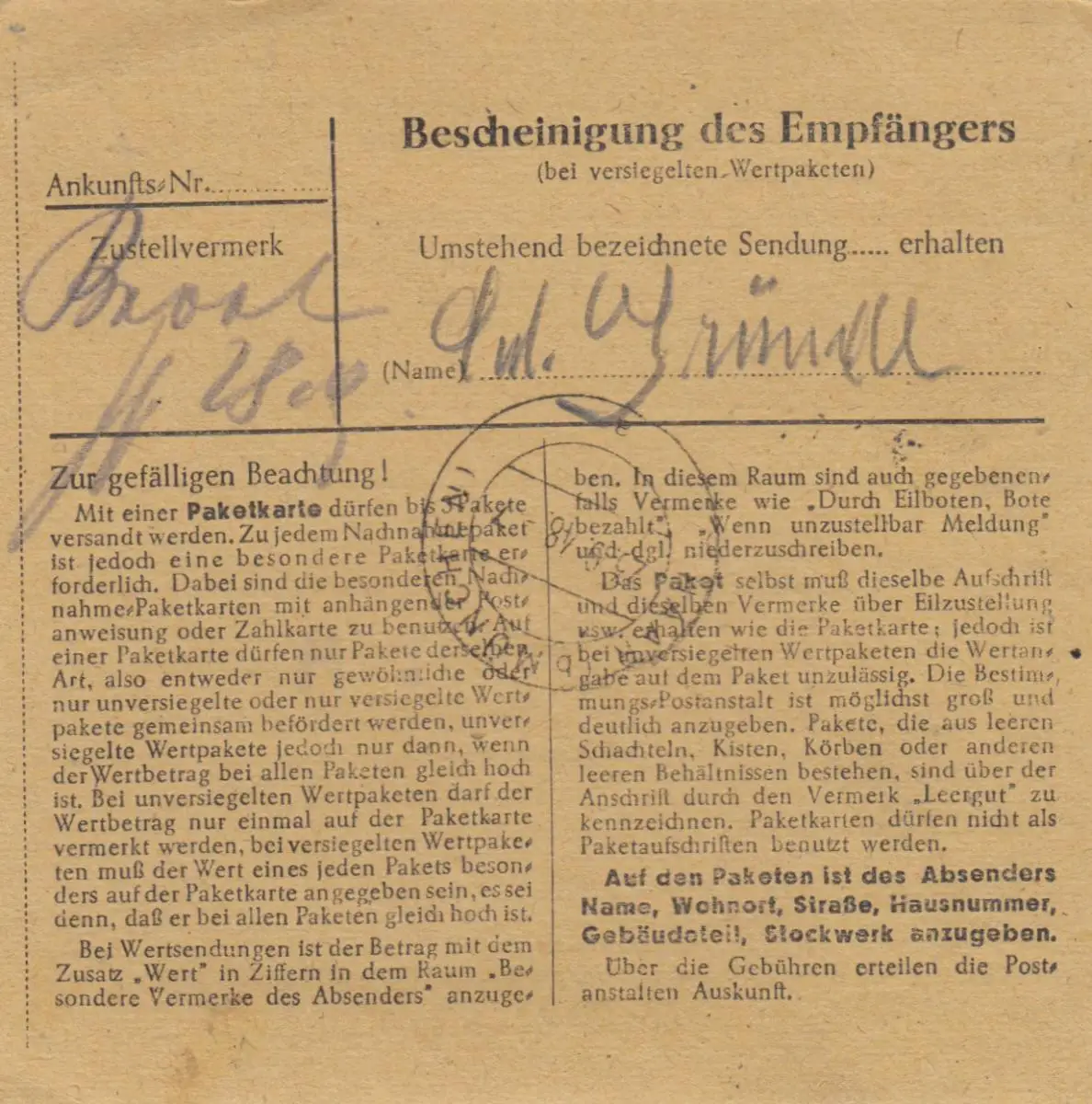 Carte de paquet BiZone 1948: Wiesbaden par cheveux, carte de valeur