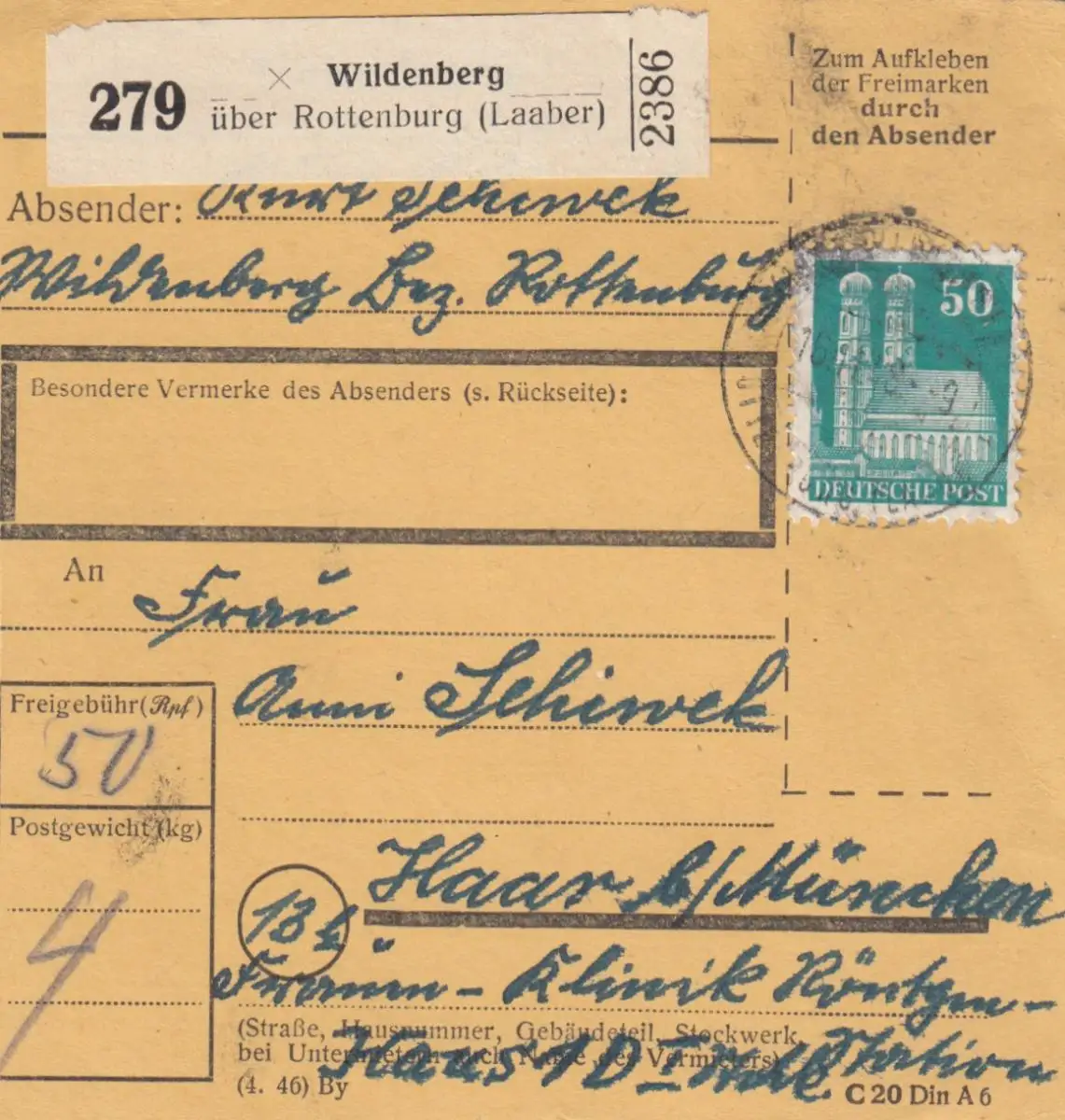 Carte de paquet BiZone 1948: Wildenberg après les cheveux, clinique féminine, maison à rayons X