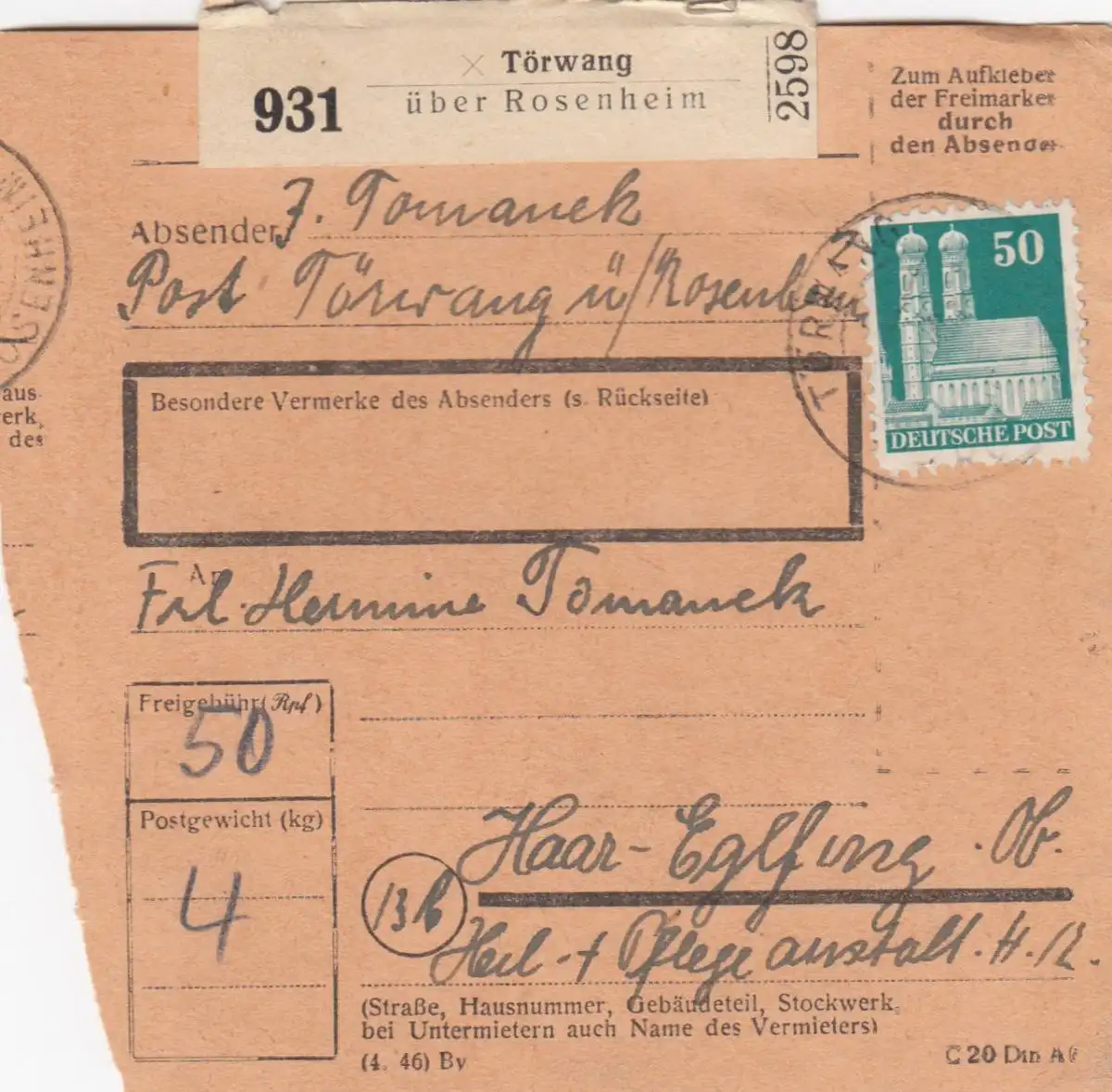 Carte de paquet BiZone: Törwang après cheveux-Eglfing, établissement de soins