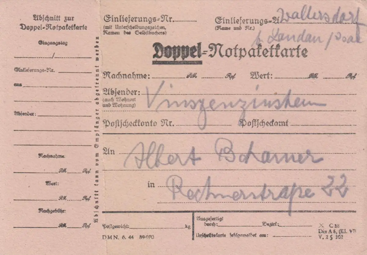 Carte de paquet BiZone: Wallersdorf b. Landau, carte de package double